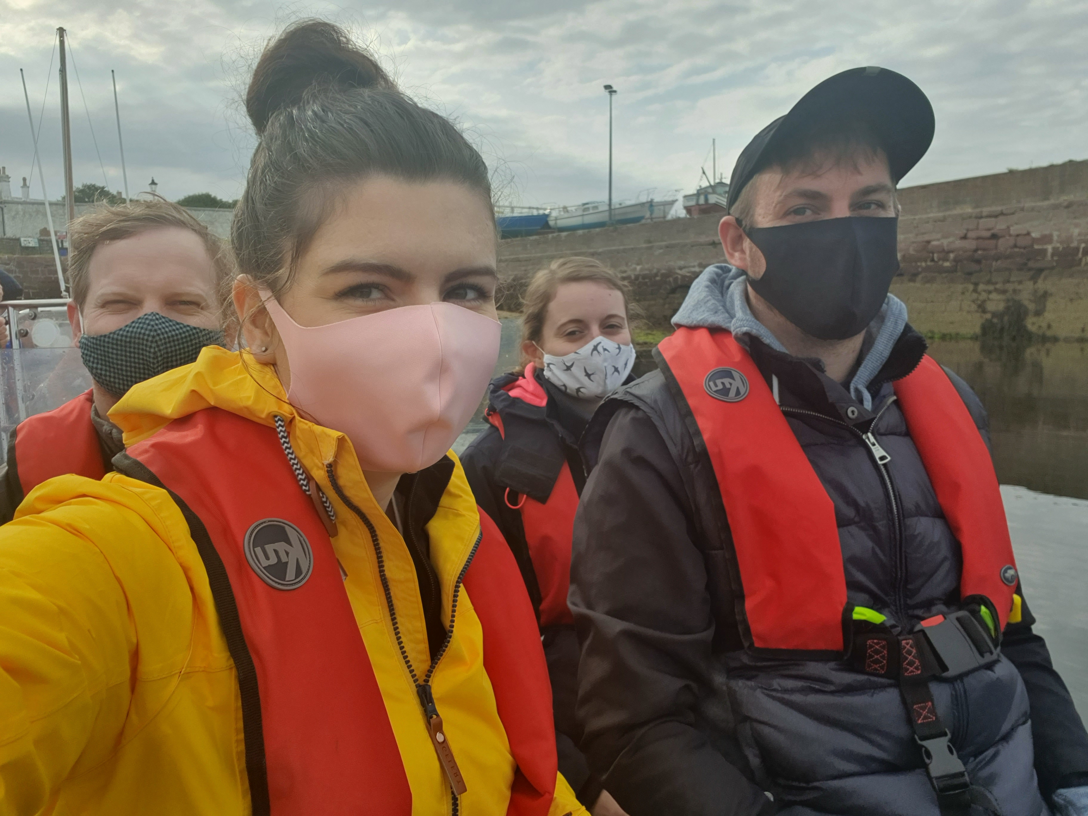 Our tour guide explained that we had lovely conditions and that the sea was really calm so we should have no issue spotting anything poking out of the water. As the RIB boat headed out of the harbour onto the open sea the boat started bouncing around on the waves and we were having a great time feeling the sudden drops after every bounce…well…3 of us did…Danielle not so much.