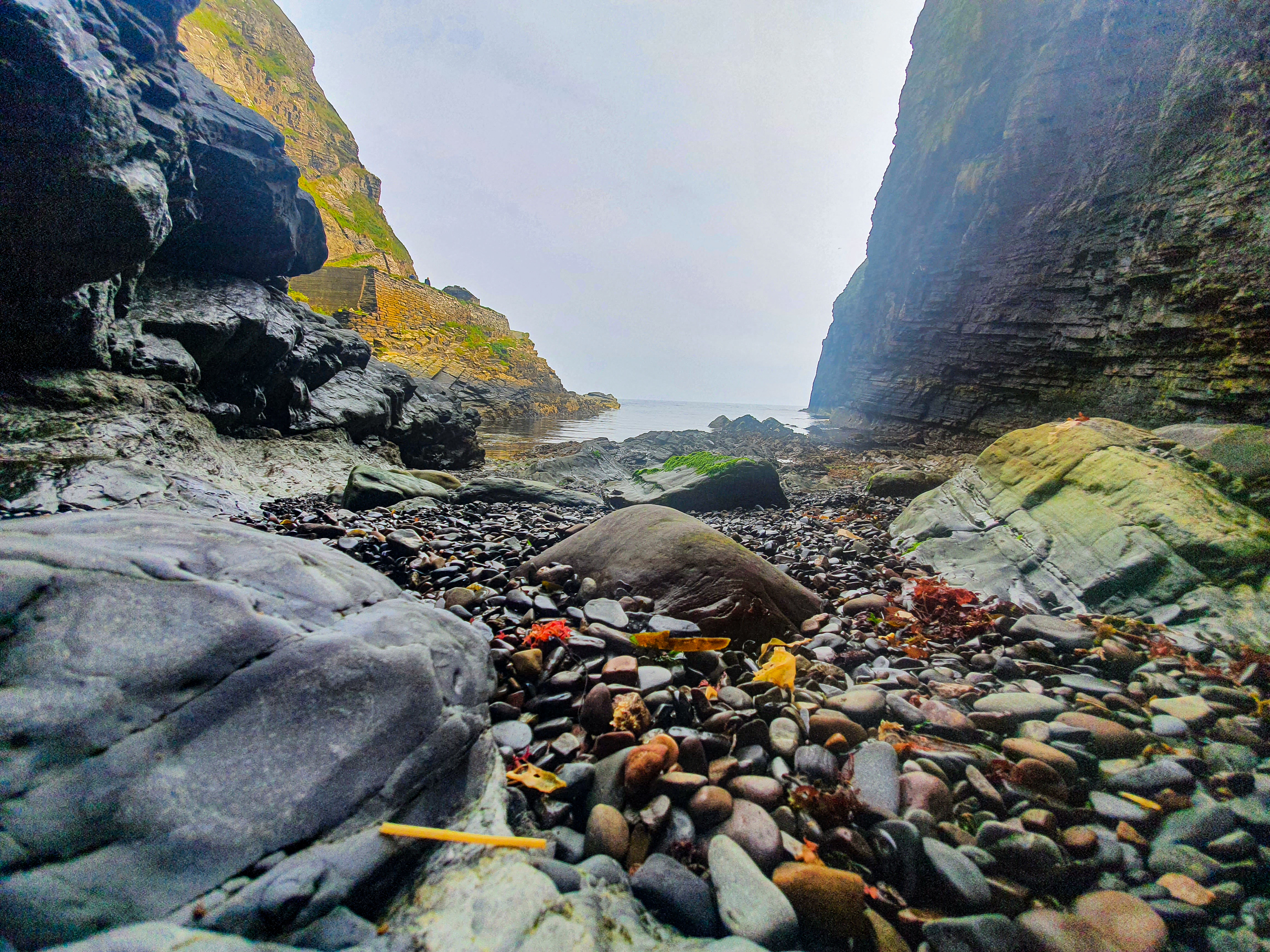 The walk down to the steps and into the harbour is right next to the car park so we were walking down there virtually straight away. The view is beautiful and the natural harbour is amazing. We spent some time taking photos and skimming stones. Trying not to slip on the seaweed!