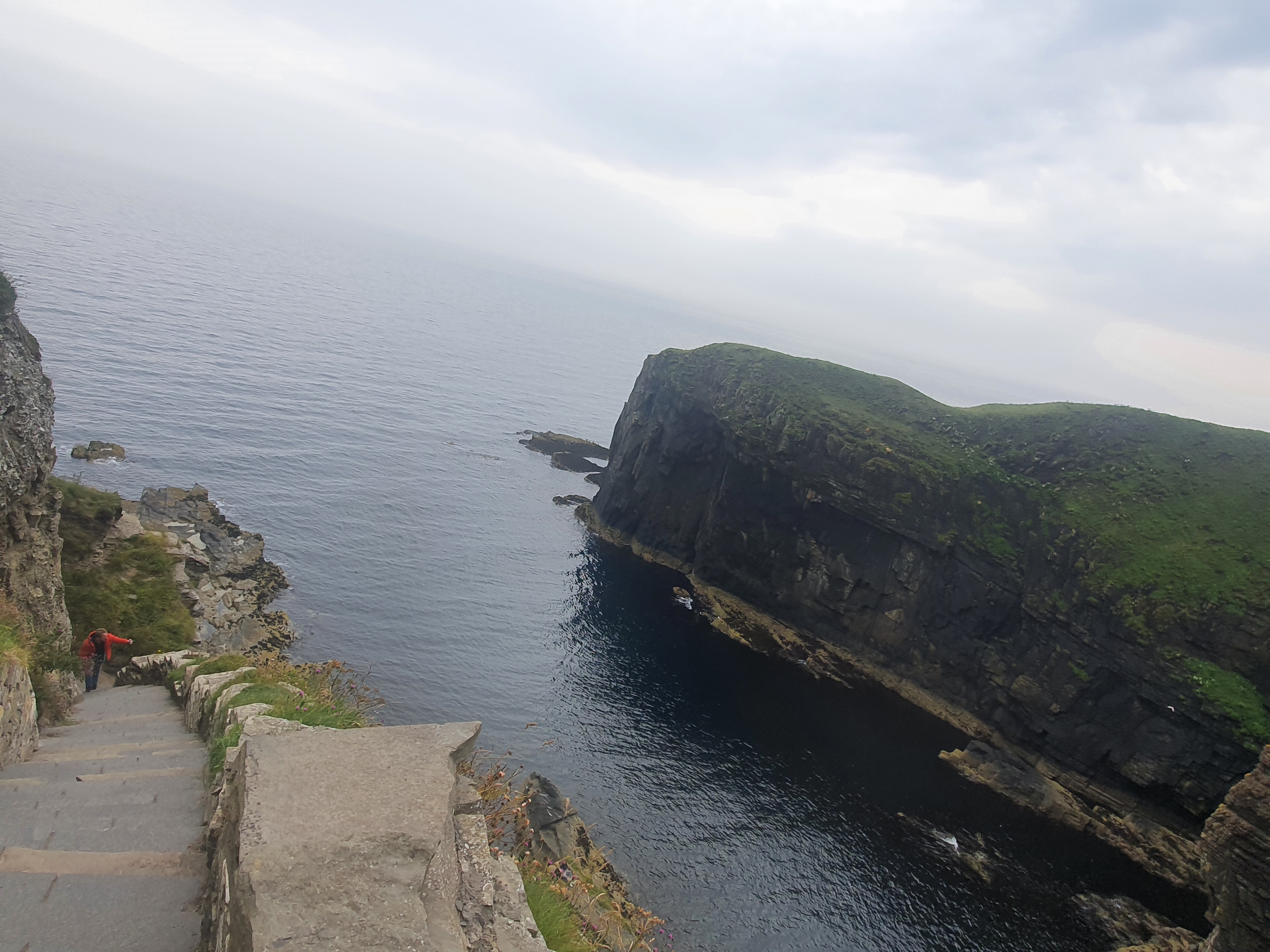 The Whaligoe steps are 300+ steps that lead down into the harbour and used to be used to transport fish up into the town. The car park is tiny but a very kind elderly gentleman to who lived next to (and presumably manages) the car park came out and offered to move the cones for us so we could squeeze in a spot he was saving. I almost didnt quite catch everything he said though due to his thick accent!