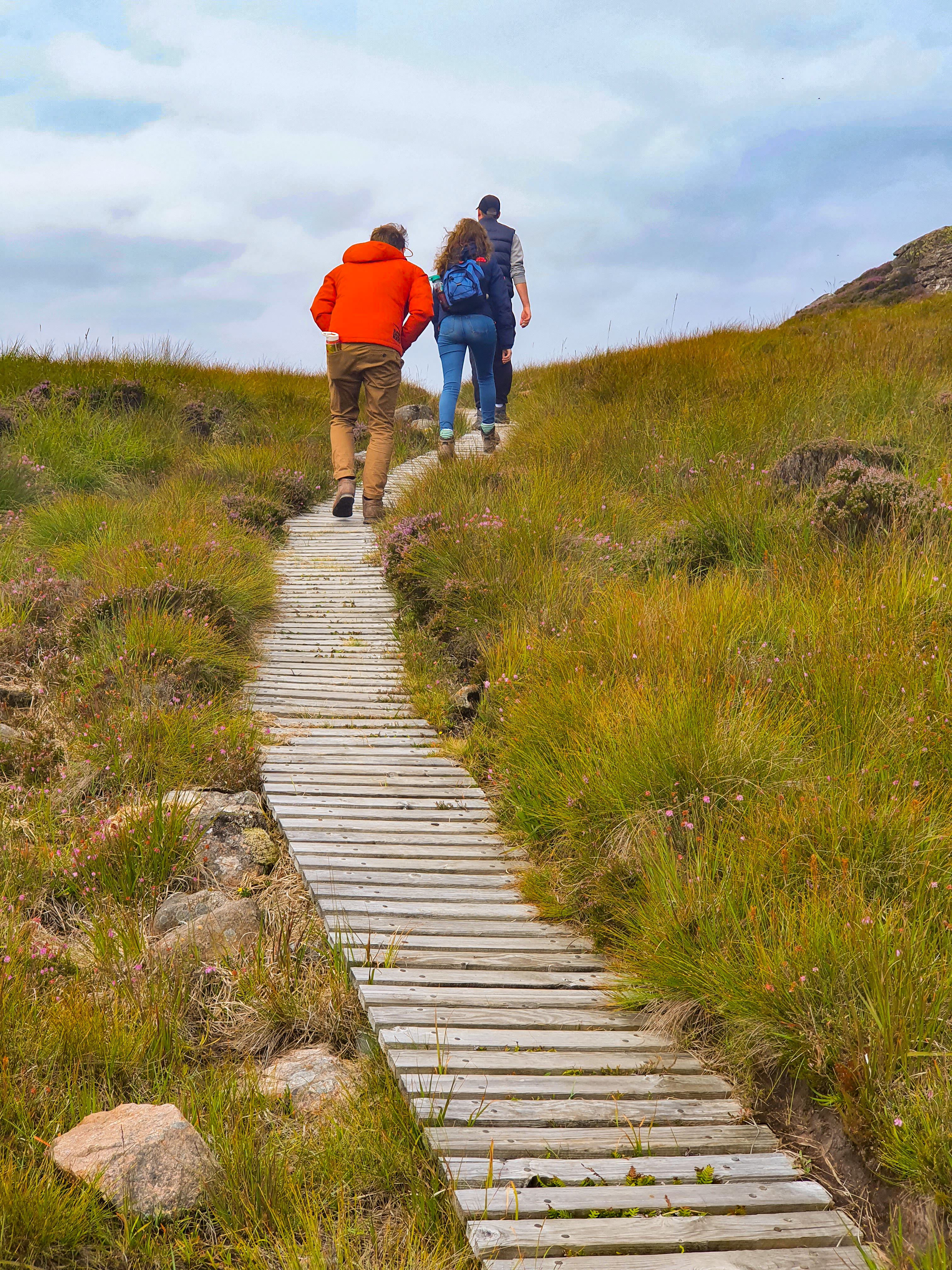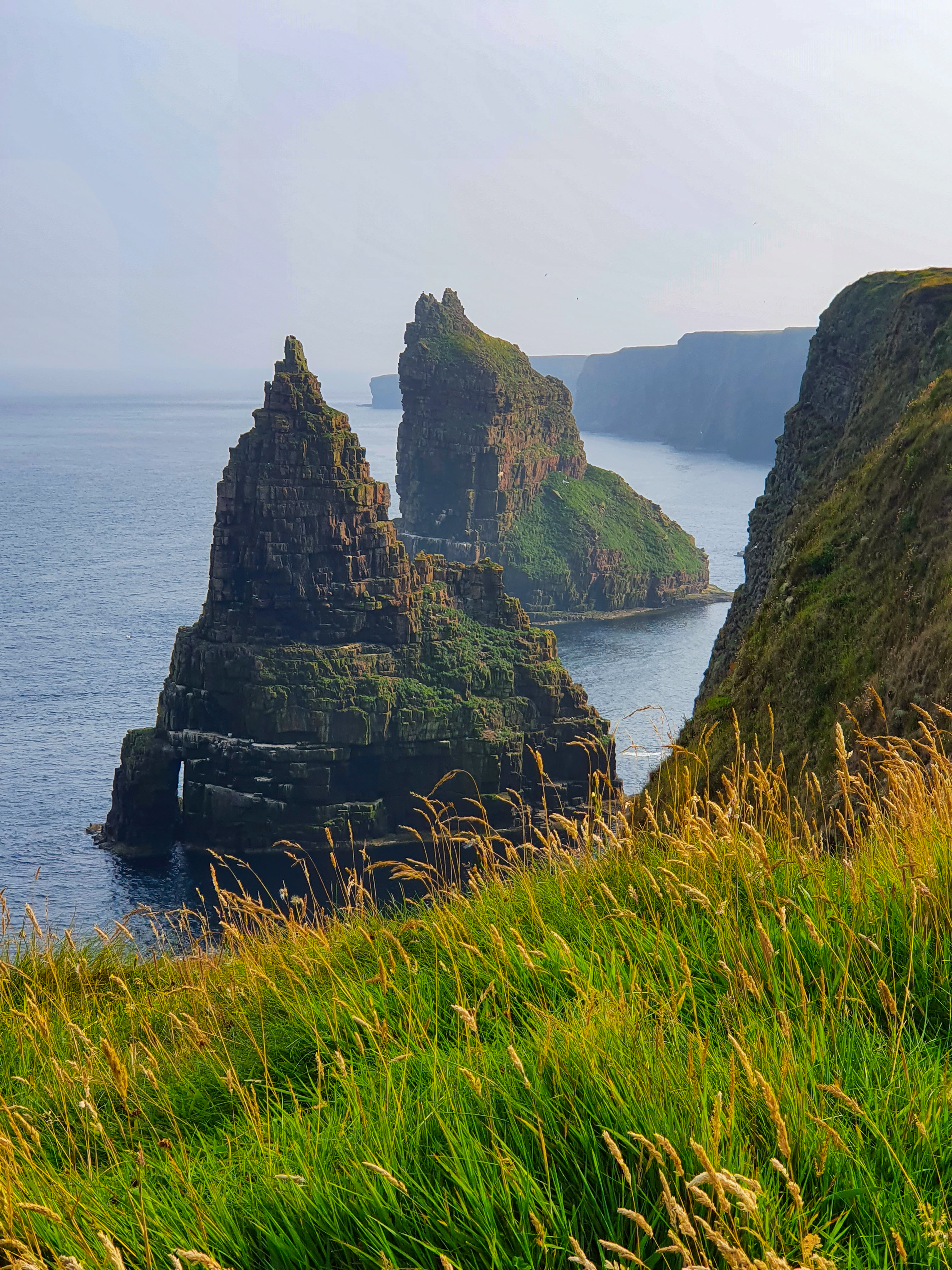 The walk leads on up and up to the highest point of the island and the cliff faces. From here you can see Scottish mainland to the east and look into the seemingly endless North Atlantic to the west. There are no railings or anything protecting you from the cliff edges so we had to be careful of our footing.