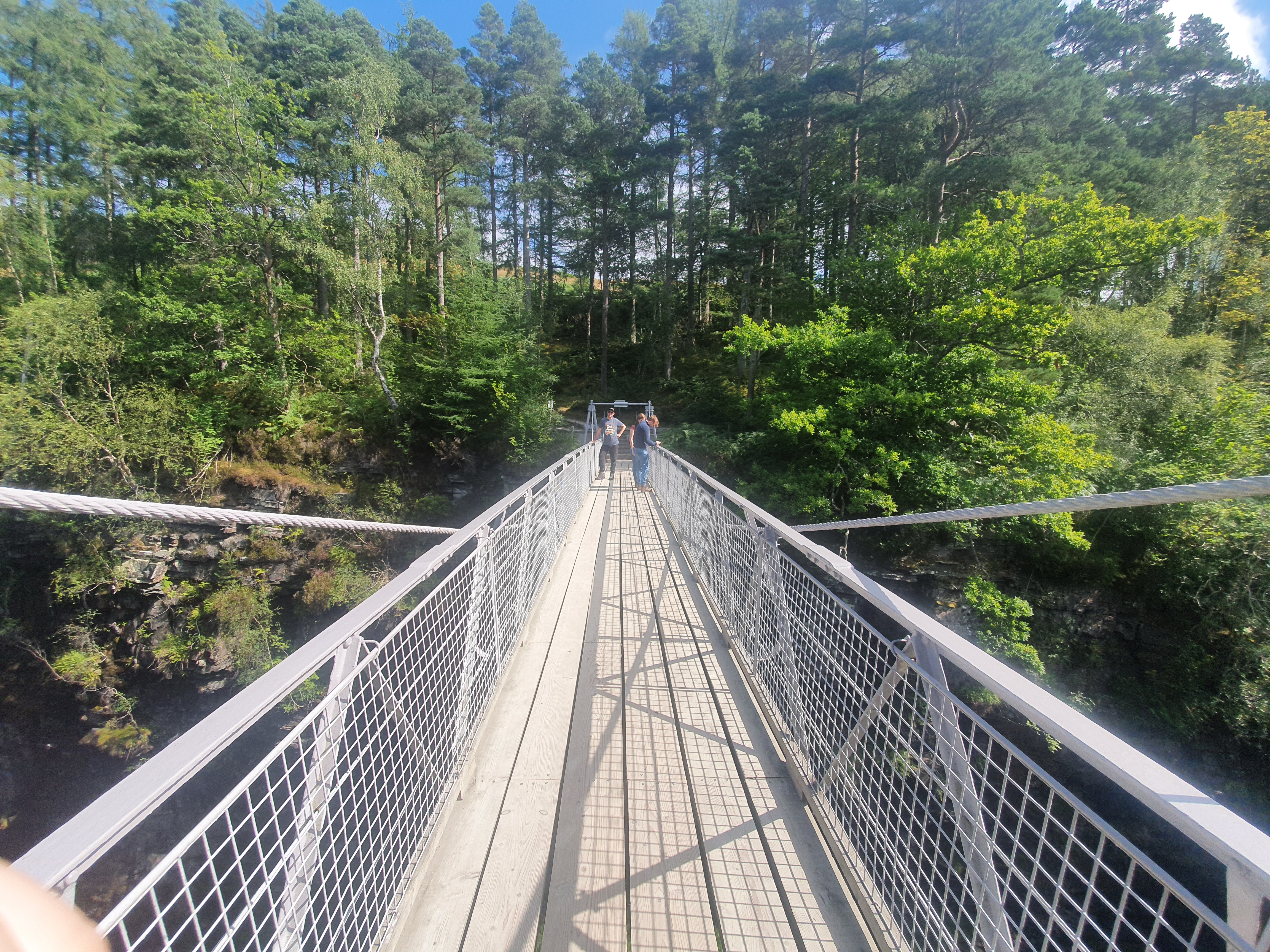 Corrieshalloch Gorge is a gorge not far from Ullapool and is 60m deep and 10m wide. From the trail head you walk for a few minutes before coming to the suspension bridge over the gorge. From here you can see the Falls of Measach. The bridge is quite high and you can see through the slats on the floor so I imagine some people might get wobbly legs. I certainly held on tightly to my phone!
